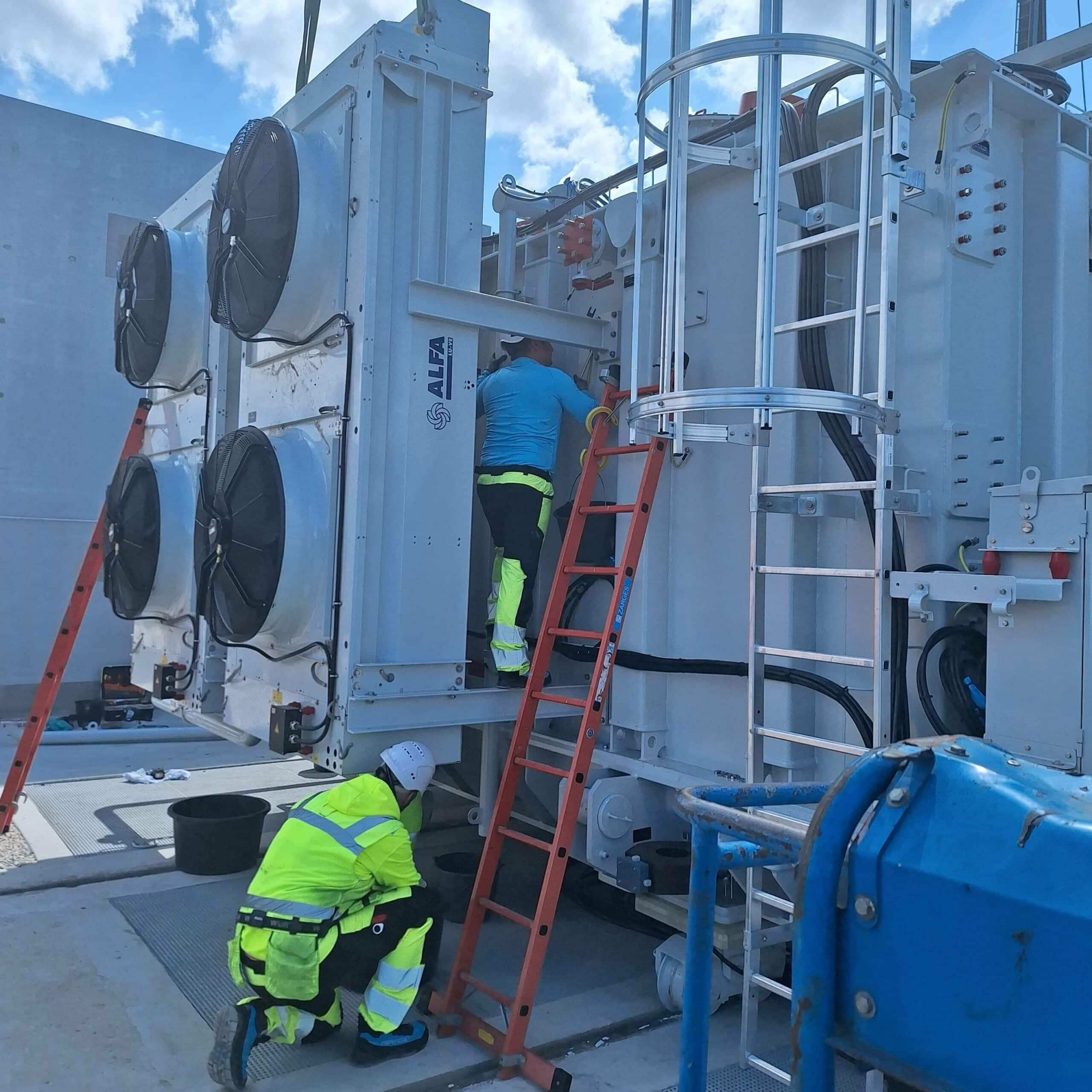 SONEC supervision for the installation of a Kolektor Etra (Energetski Transformatorji d.o.o.) power transformer at Enedis in Paris: unloading of the transformer, lodge installation, assembly of accessories, piping and air cooler, on-site filling and removal from the site. A big well done to the ETRA fitters, SONEC supervisors and ENEDIS teams on site.