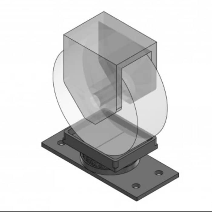 - Coussin en inox et ressort en acier encapsulé entre une platine de fixation et un support pour la roue du transformateur.