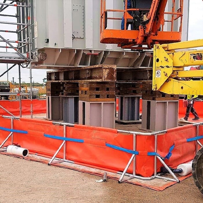 Comment réaliser de façon simple, rapide et efficace une zone de stockage temporaire sur des durées courtes à moyennes pour vos transformateurs de puissance remplis d’huile ? C’est la problématique à laquelle SANERGRID répond avec la gamme TRFLEX-REFOR, grâce au dimensionnement des bacs de rétention souples, et à leurs caractéristiques techniques très élevées, capables de résister aux camions, grues, poutres de ripages et autres contraintes mécaniques liées aux manutentions des transformateurs de puissance.
